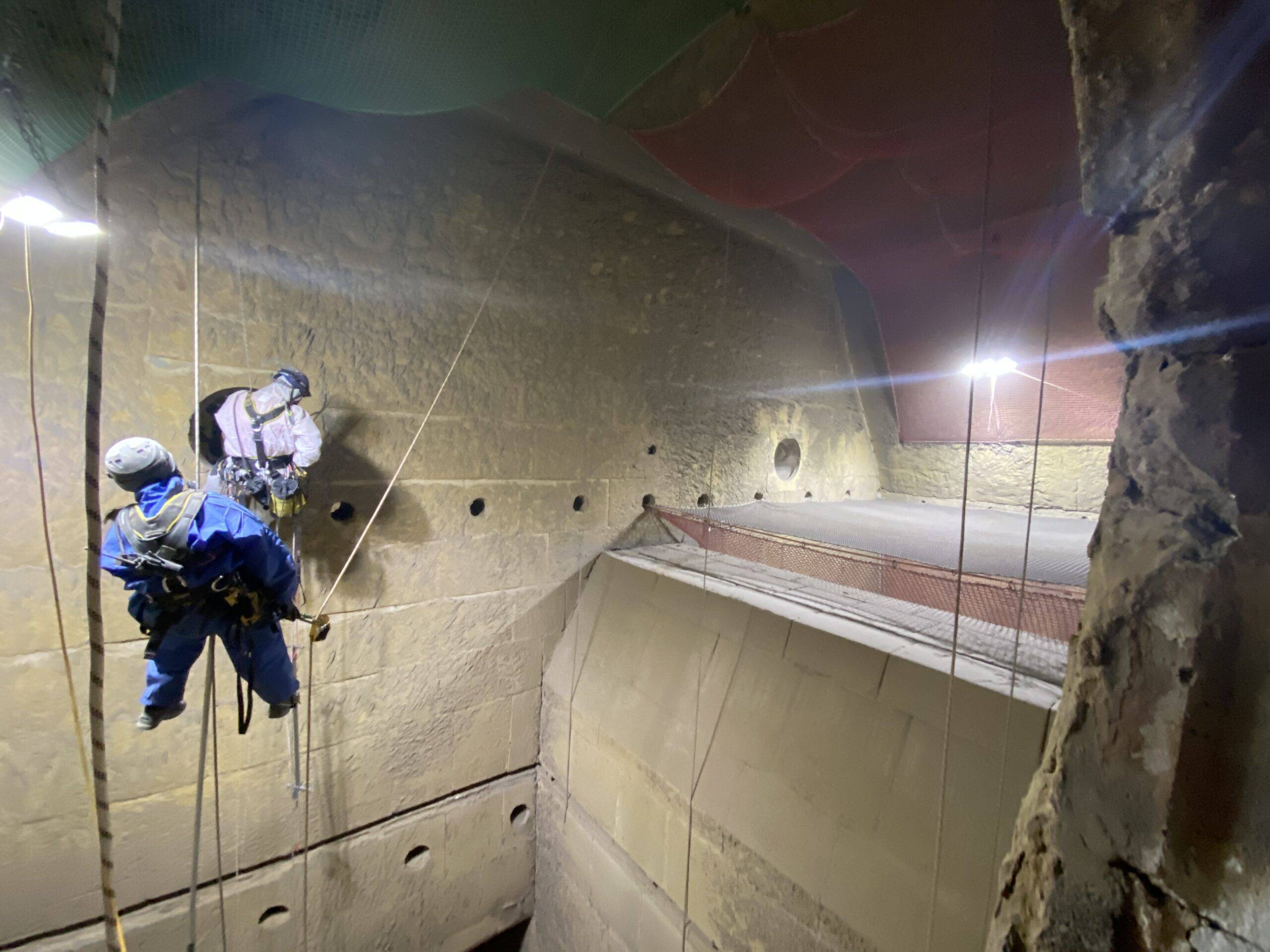 Professionelle ZFP-Prüfung per Rope Access in Zusammenarbeit mit unseren Kooperationspartnern.